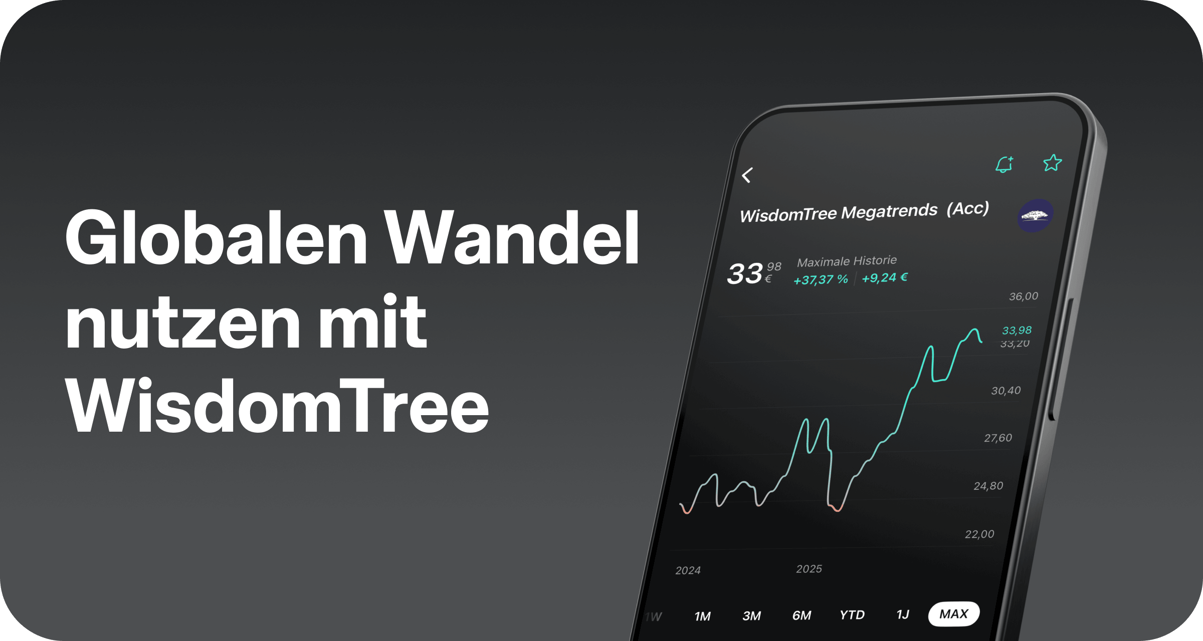 Der WisdomTree Megatrends UCITS ETF bündelt solche strukturellen Verschiebungen in einem einzigen Produkt. Der ETF deckt mit über 800 Aktien aus 39 Ländern insgesamt 18 verschiedene Megatrends ab – von Künstlicher Intelligenz und Robotik über die globale Energiewende bis hin zum demographischen Wandel. So lässt sich das, was die Welt nachhaltig bewegt, bequem ins Depot holen.